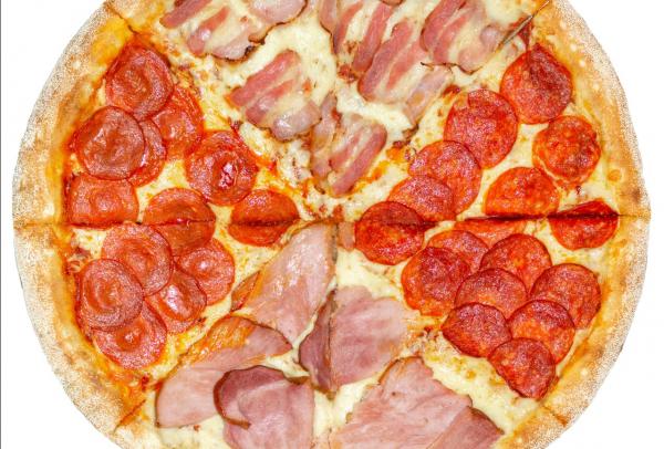 Ветчина, бекон, пепперони, орегано, моцарелла, пармезан, соус "Мульти"